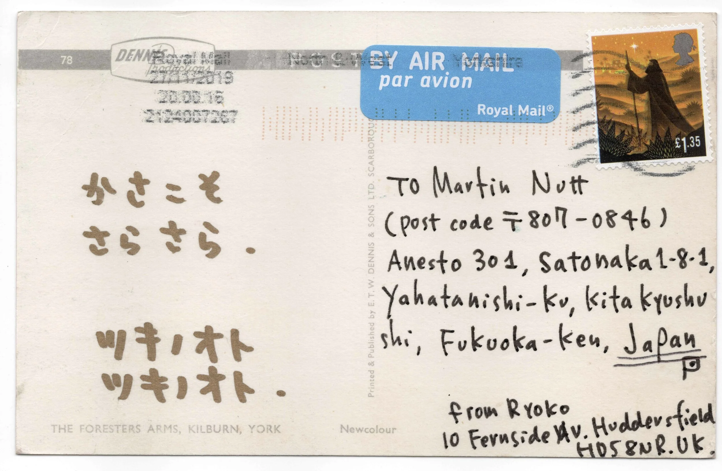 twelve seasons’ is a composition by Martin Nutt and Ryoko Akama created through 12 months’ of postal exchange between Fukuoka, Japan, and Huddersfield, UK. The piece comprises 24 postcards embodying seasonal aural experiences. Below is a documentation of how Ryoko and I have realised these elegant and equivocal objects into audio and visual pieces. Instead of viewing the postcards as ‘scores’ in the traditional sense—in that they direct specific musical actions—we have used them as fragmentary, transitory connections between creative ideas, such that our work reflects their conception.